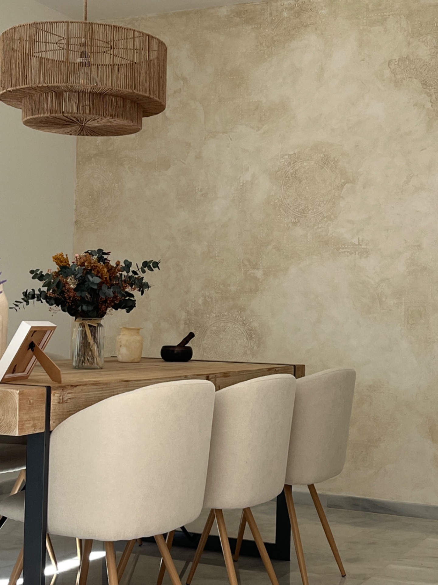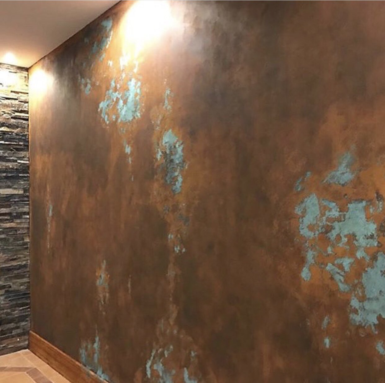 Imitación mármol sobre columna y efecto sedaen paredes